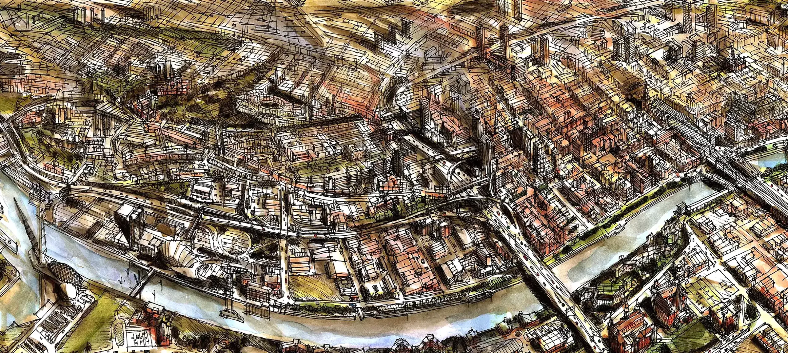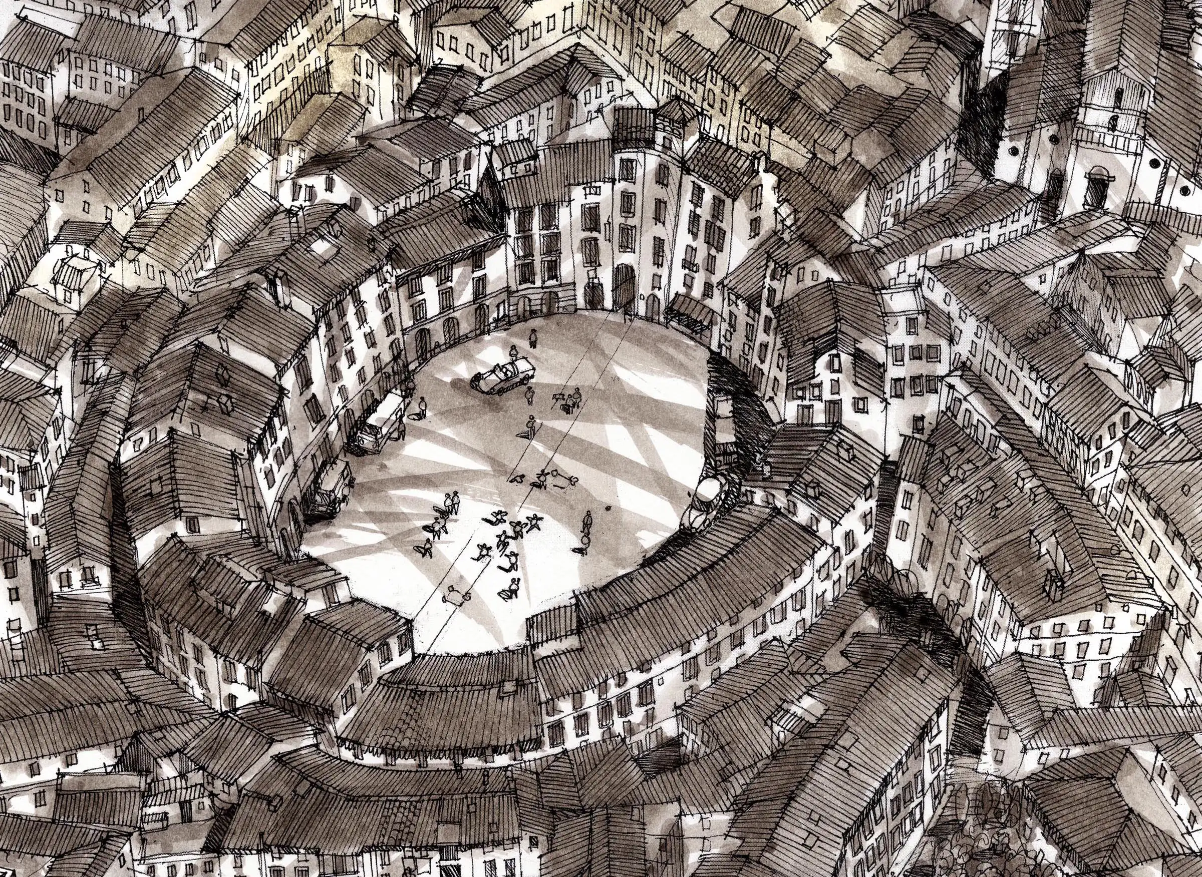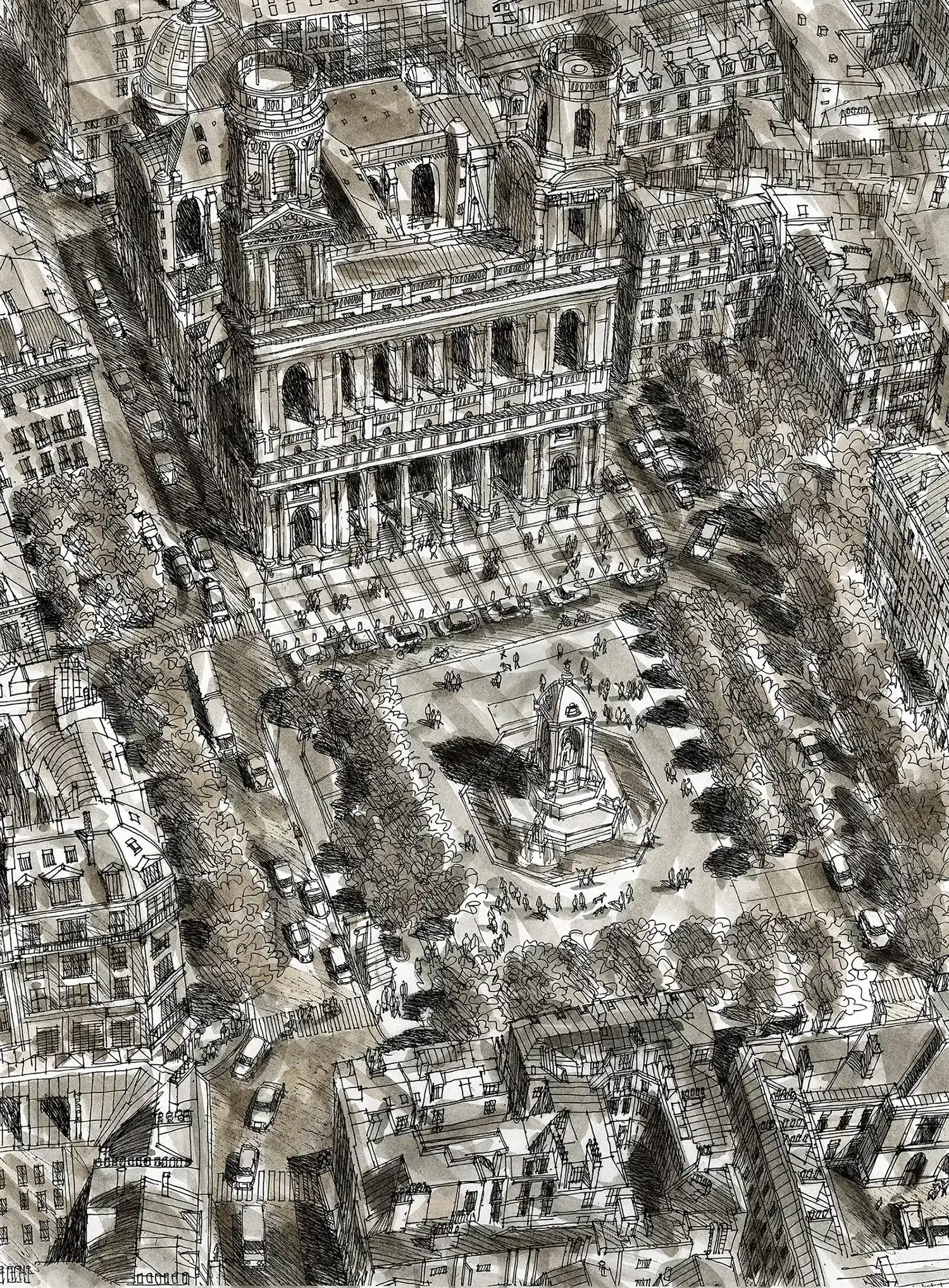 Il travaille également sur un projet pour enfants et crée des vues aériennes de villes au fil du temps, montrant leur croissance, leur changement et leur évolution.