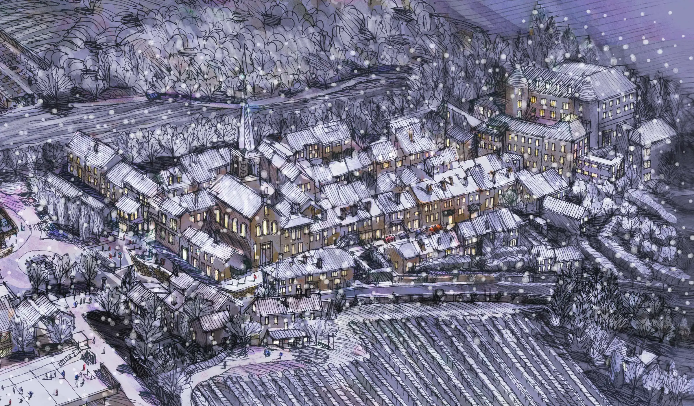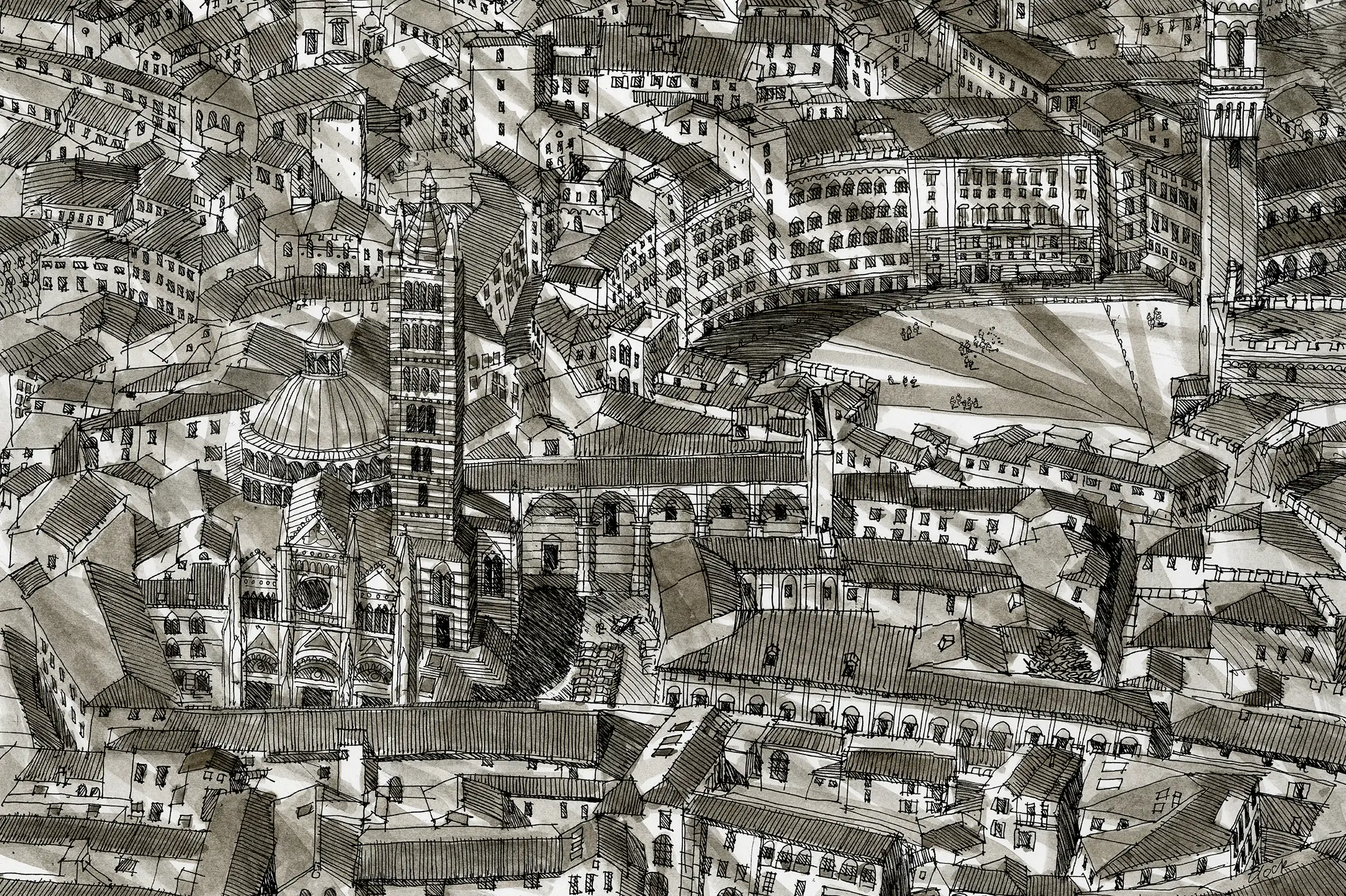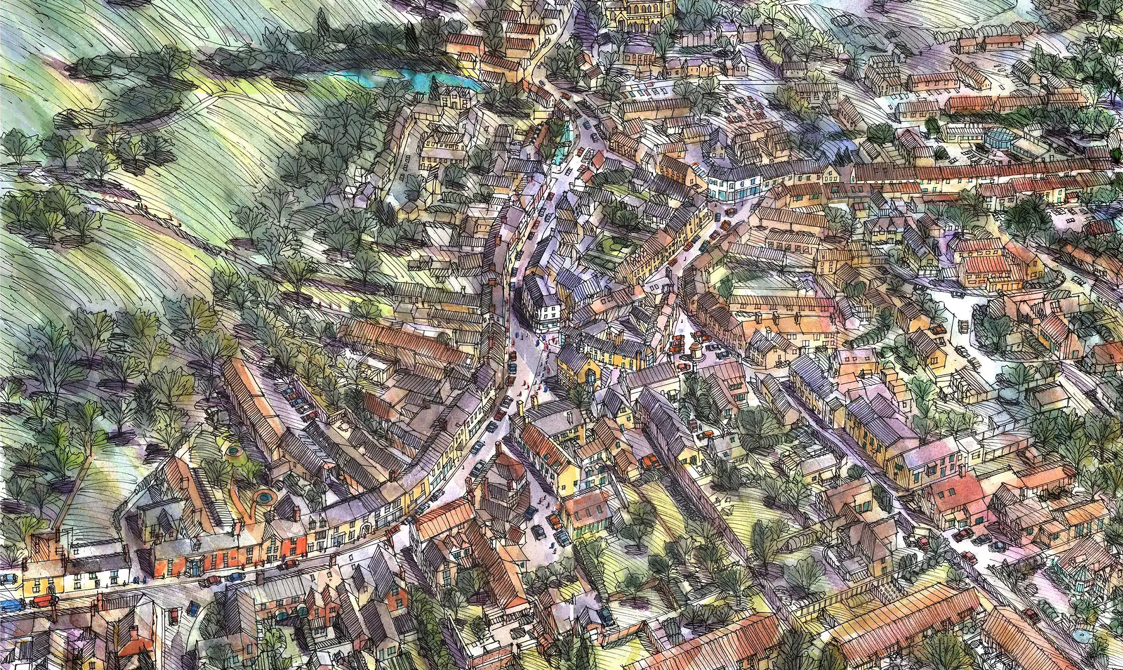 Il travaille également sur un projet pour enfants et crée des vues aériennes de villes au fil du temps, montrant leur croissance, leur changement et leur évolution.