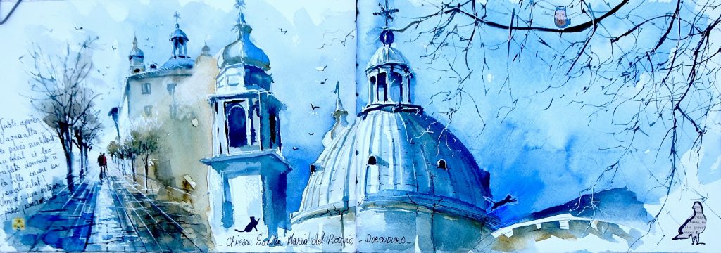 Depuis 2009, Violaine expose en galerie, participe à des salons d’aquarellistes nationaux et internationaux ainsi qu’à différents festivals du carnet de voyage. Violaine aime tout autant peindre en atelier qu’en extérieur et ses carnets de croquis ne la quittent jamais. Ils sont les témoins artistiques de sa vie autant qu’un outil de recherche pour travailler la spontanéité du trait et les ambiances colorées.